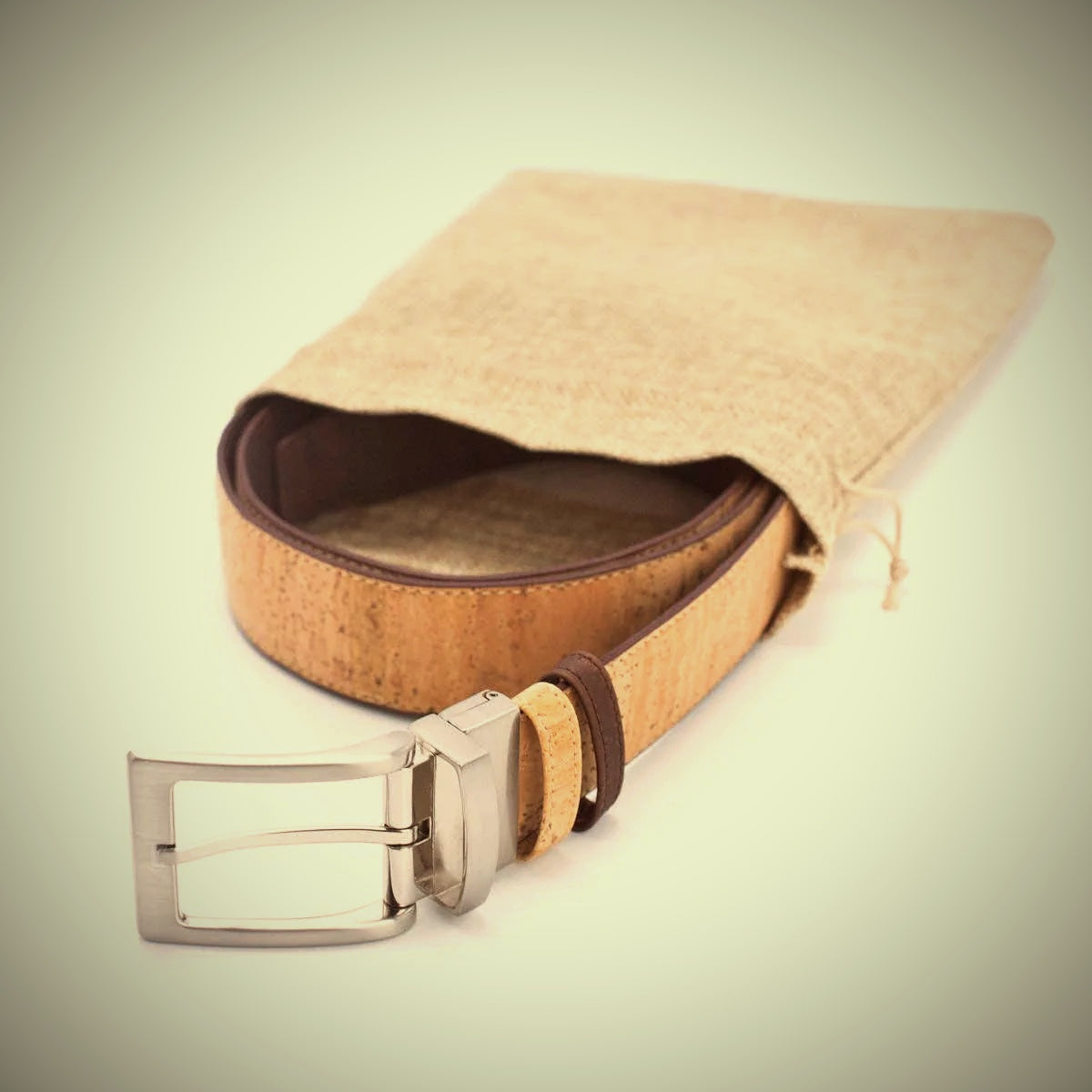 korkmaterial på båda sidor. Detta bälte har en naturlig